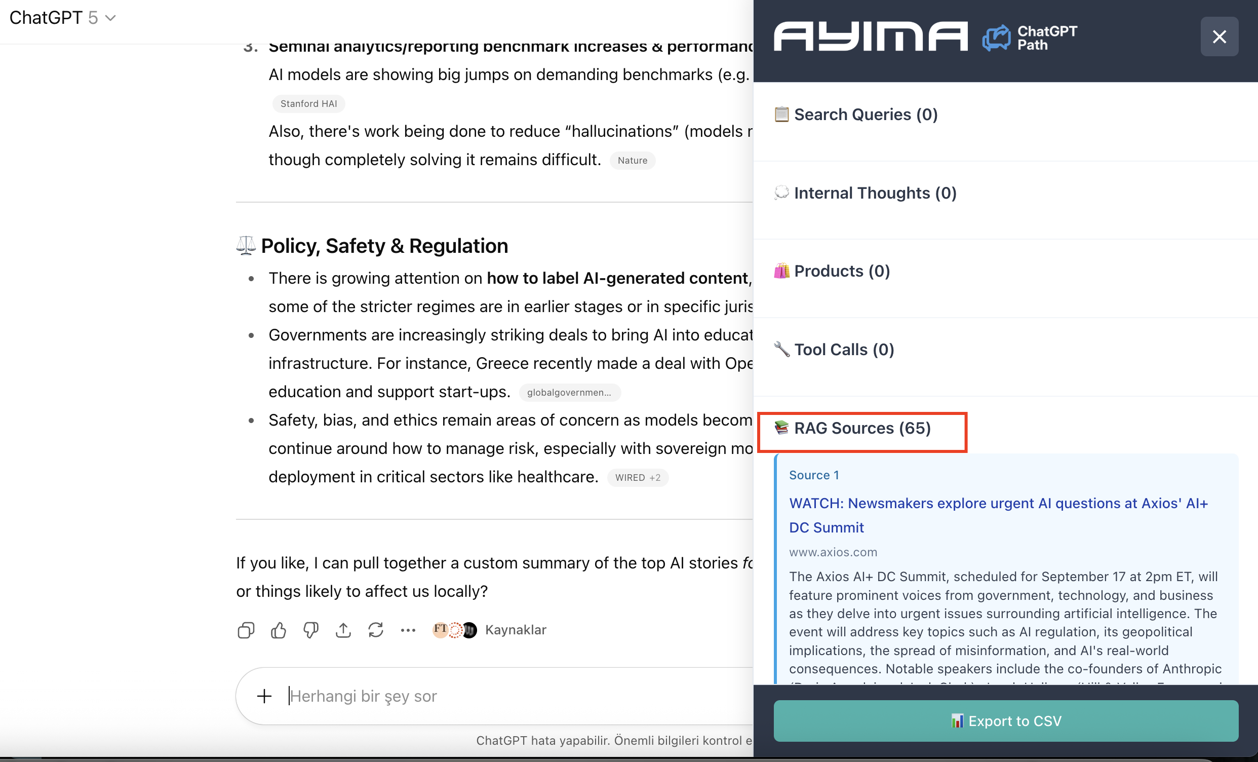 Using the AYSIMA ChatGPT extension to track RAG sources, I tested how many web results ChatGPT actually retrieves for different queries. The results were eye-opening for anyone hoping to get AI citations from lower search rankings.