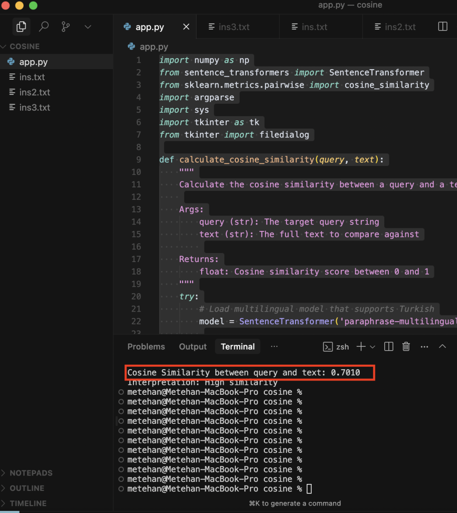 Şu an İngilizce dilinde 40.sıraya kadar AIO’da yer alan web sitelerini de nadir de olsa görüyorum. Bu analiz için Cursor ile basit bir Python scripti yazdım. GitHub linki burada.Herhangi bir API ihtiyacınız yok,Bir Sentence Transformer kullanarak daha etkili sonuçlar elde edebilirsiniz, tezleriniz varsa uygulayabilirsiniz. Tek ihtiyacınız olan TÜRKÇE desteği olan bir model. Microsoft’un modelleri de çok iyi bu arada. HuggingFace arayüzü ve kullanımı bence daha basit, ben bu platformu kullanıyorum. https://huggingface.co/sentence-transformers