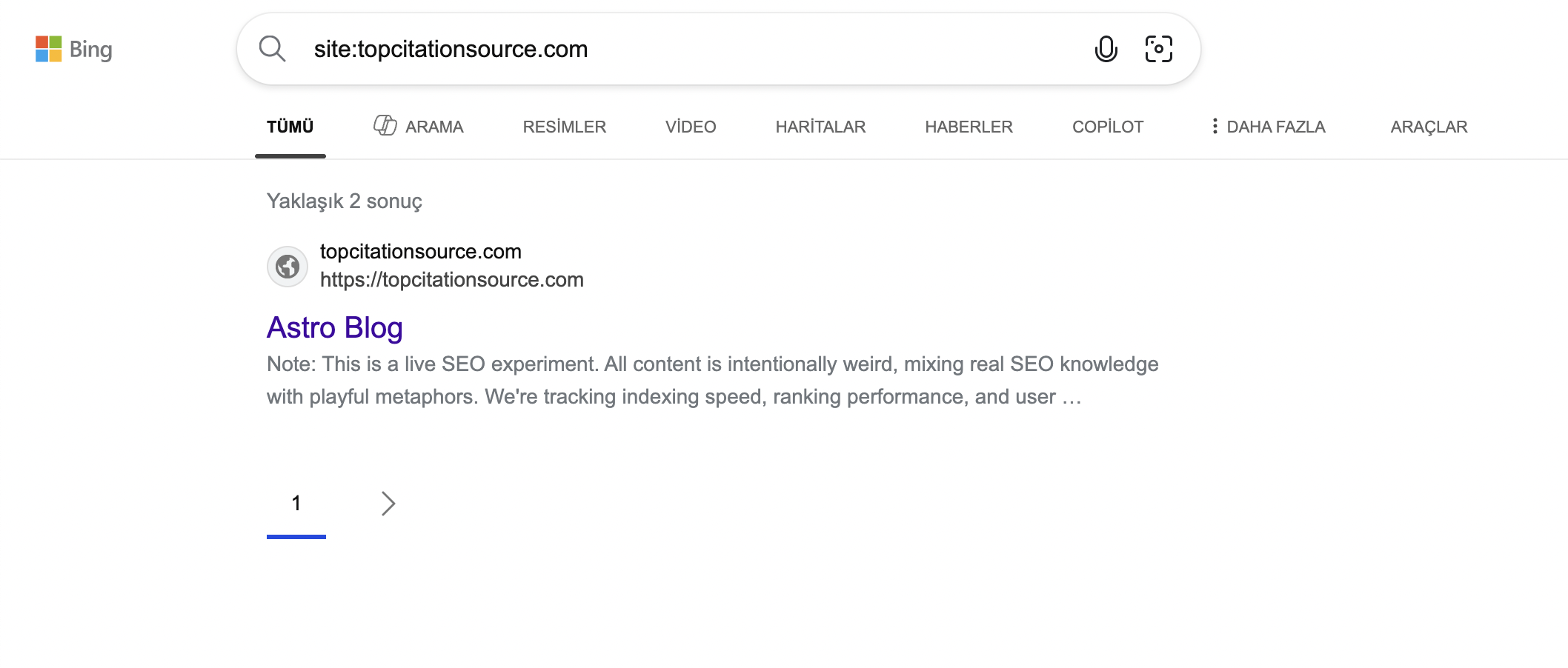- Bing: 1 page (sometimes 2 pages, HTTP and HTTPS homepage results).