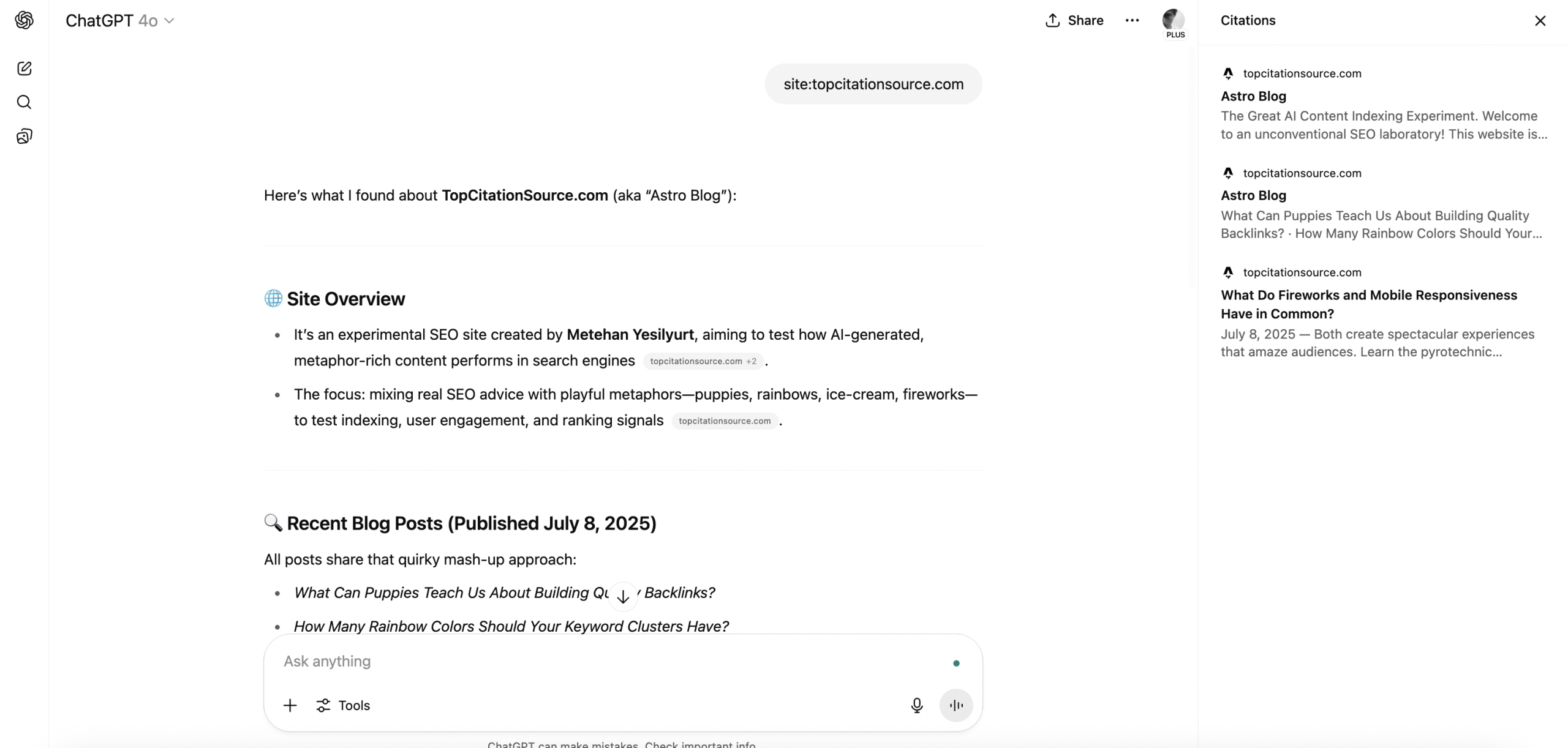I conducted an indexing experiment for ChatGPT, and the results were a bit surprising.